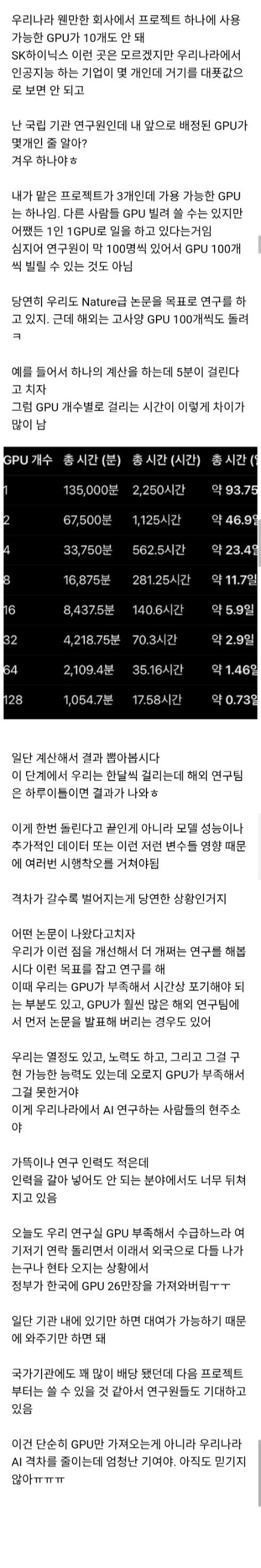 이거 투자하는 사람들이나 ai쪽 관심 있어 하는 사람이면 이게 얼마나 대단한 일인지 알거야 저 반도체 하나가 어마어마하게 비싼데 구하기도 힘들다고 돈이 있다고 해도 못사 돈이 있어서 다 살수 있었으면 우리 차례 돌아오지도 않았어 더 돈 많은