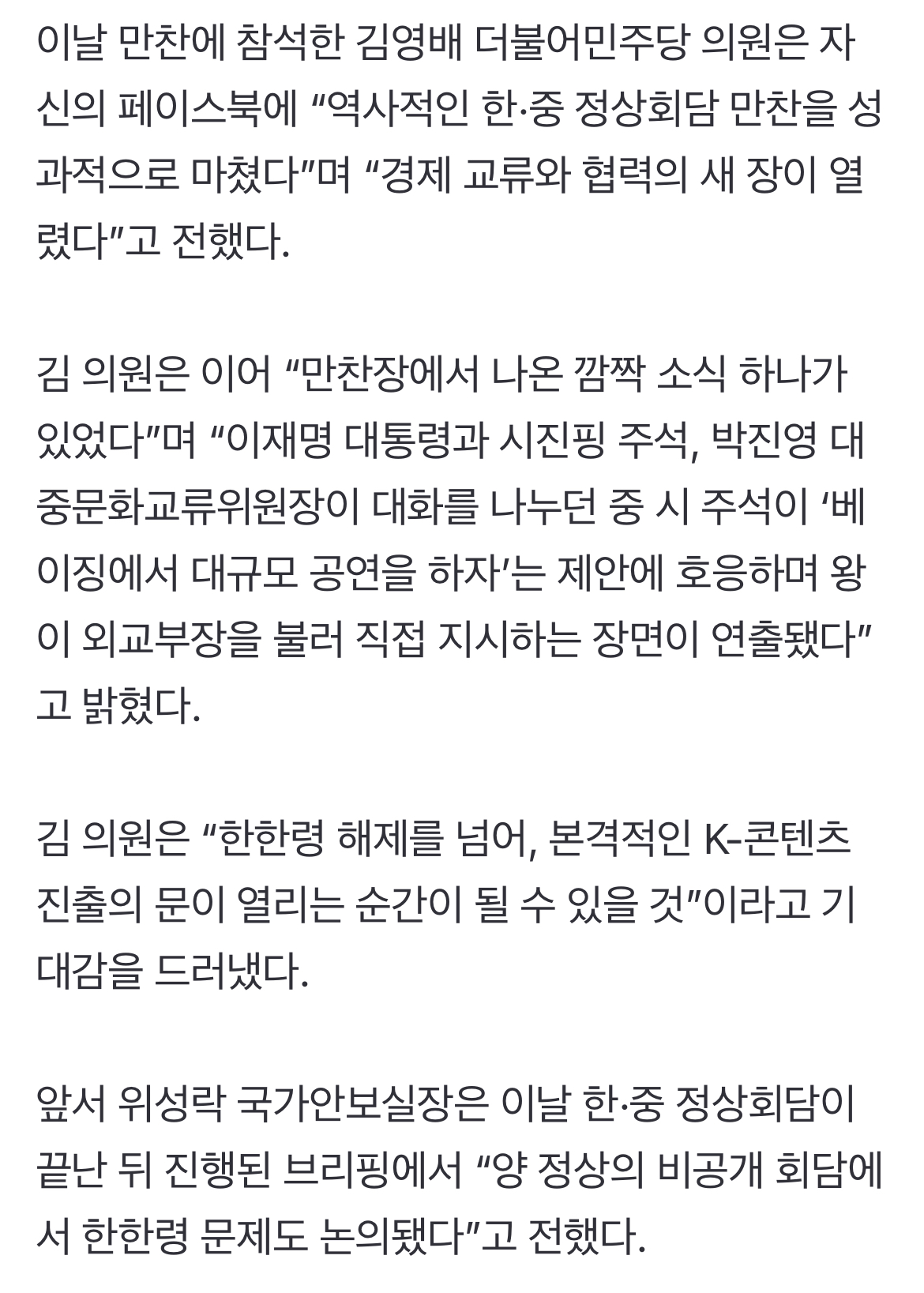 외교부장한테 공연으로 직접 지시한 거 보면 ㄹㅇ한한령 풀릴 수도 있을 듯