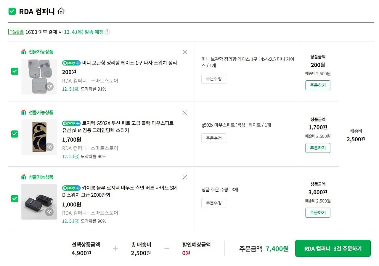 배송비까지 붙이면 비슷한 가격이었음