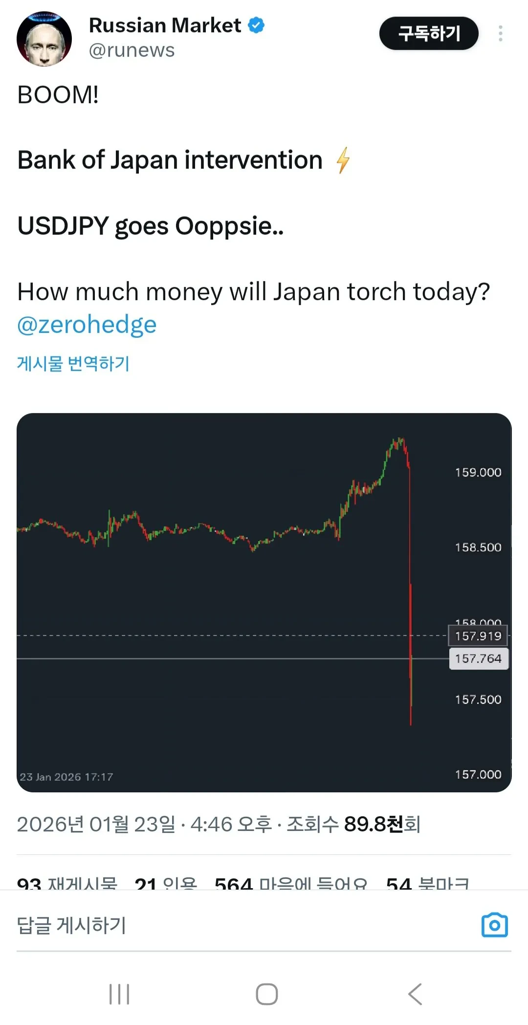 일본은행이 강하게 시장 개입한 여파로 보임