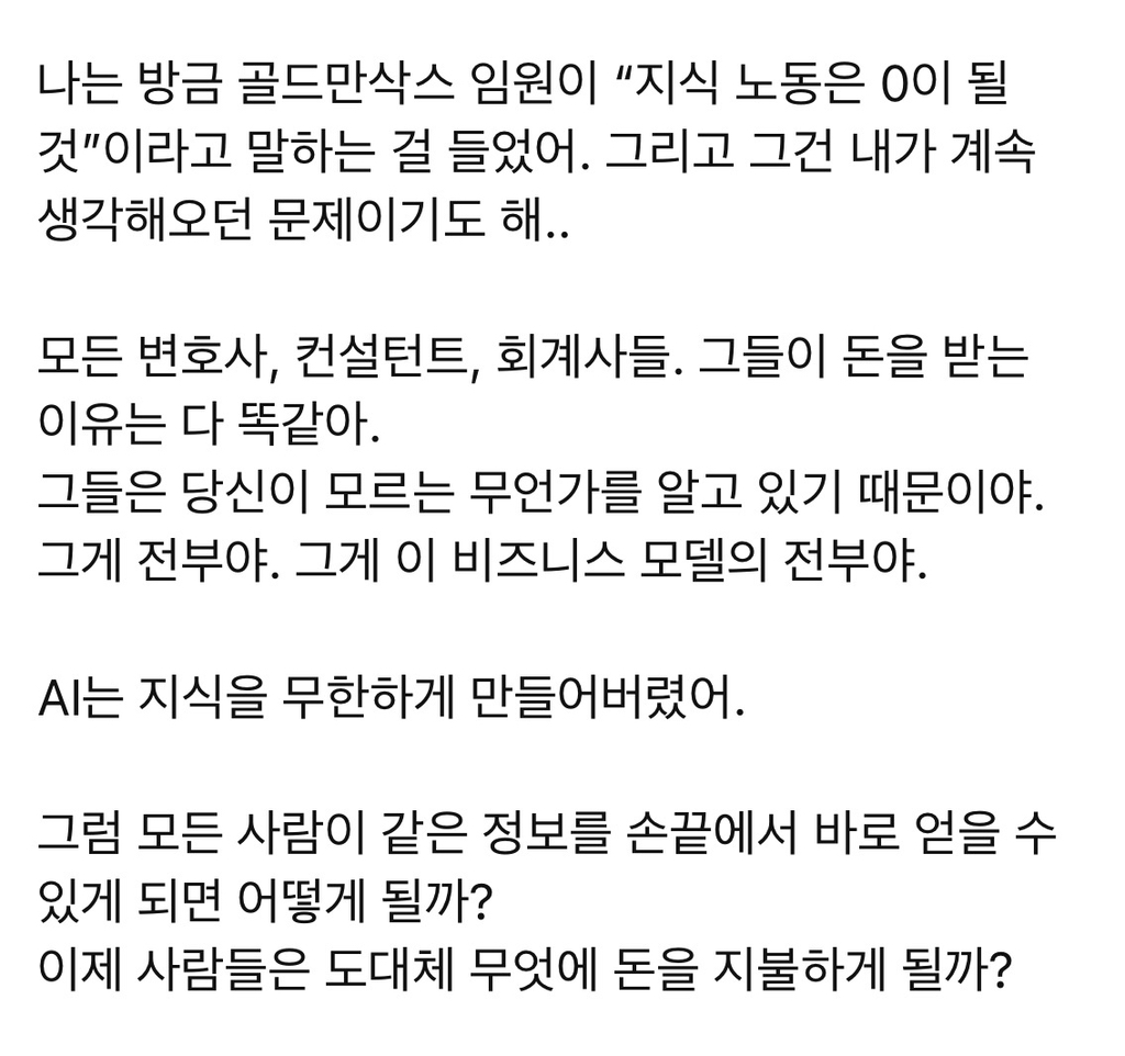 그런데 AI로 인해 지식이 무한대로 확장되면
