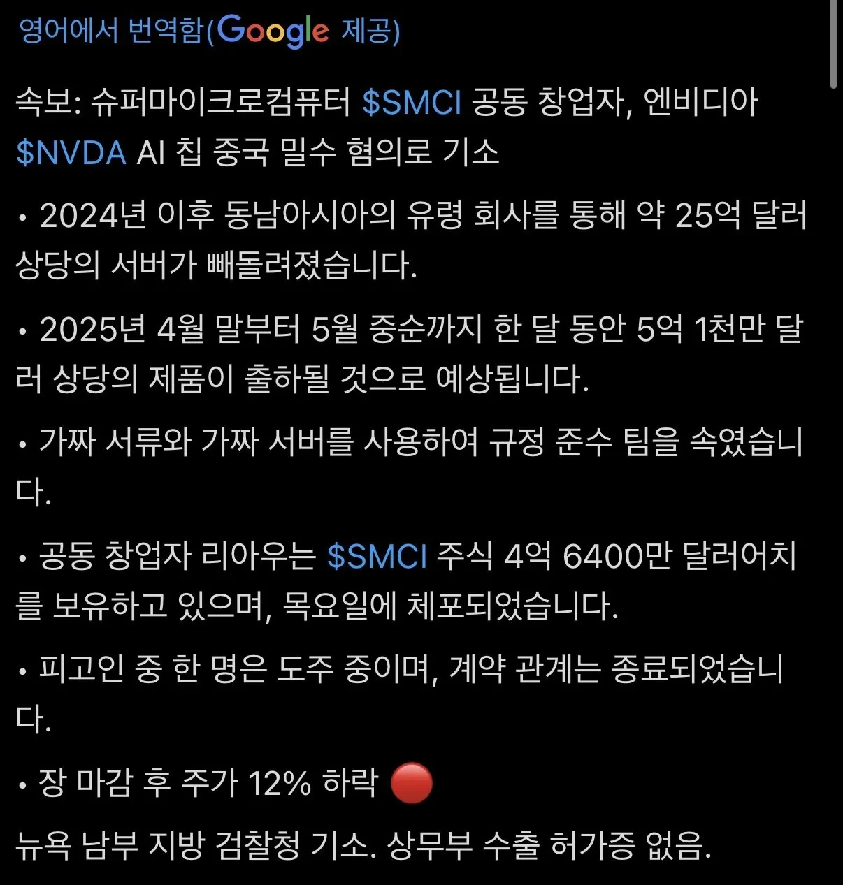 중국으로 수출 금지된 고성능 엔비디아 서버 3조 7천억원 어치 밀수 하다가 걸림
