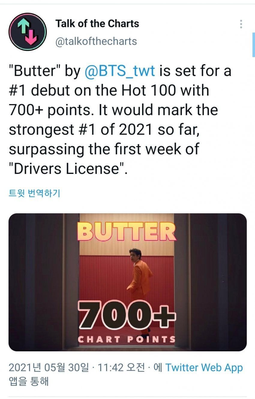 Tmi로 버터가 1위 하다가 인스트가 1위로 역전한 거고 둘 다 버터로 카운트됨
