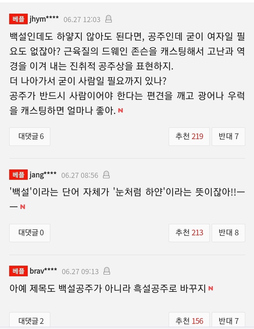 | 눈처럼 하얀 피부 원하지 않는다는 백설공주 실사화 주연 |