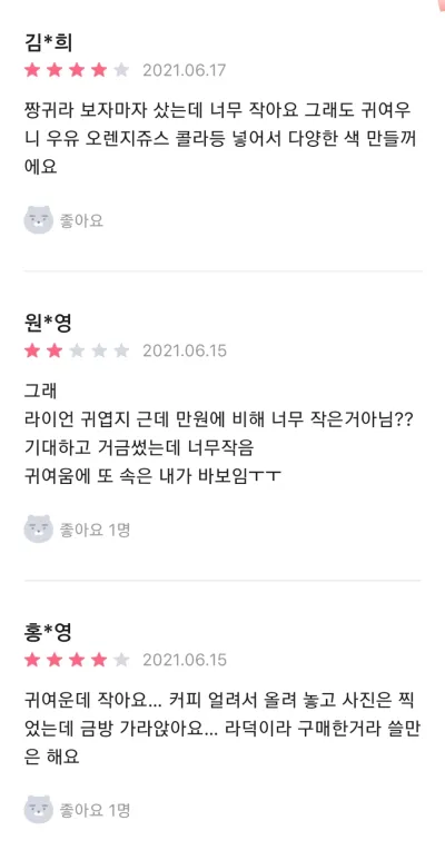 너무 작다는 반응