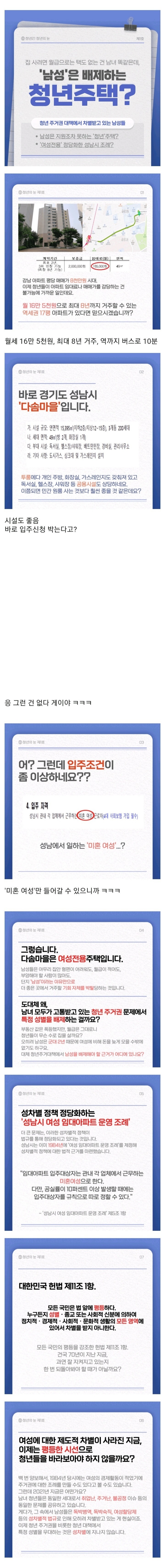 집 사려면 월급으로는 택도 없는 건 남녀 똑같은데 남성은 배제하는 청년주택