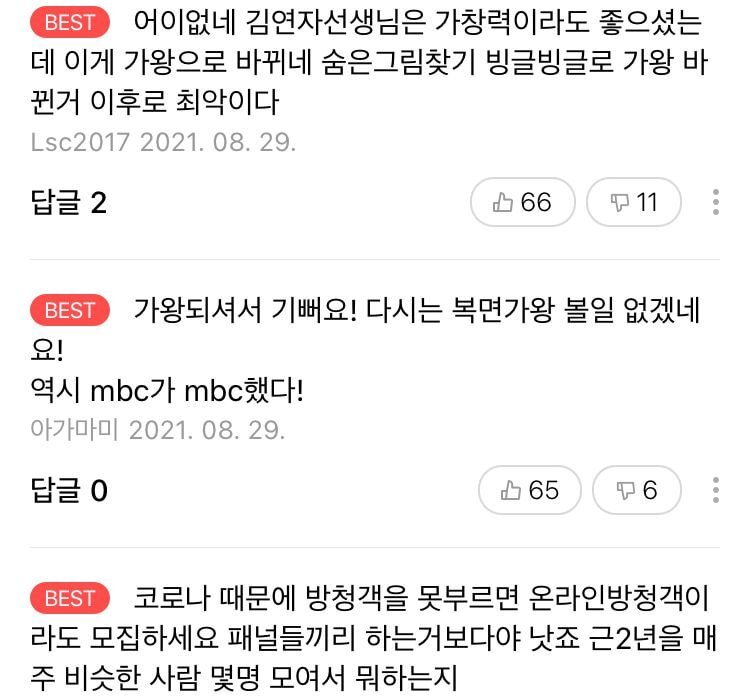 현재 가왕에 대한 네캐 베플들