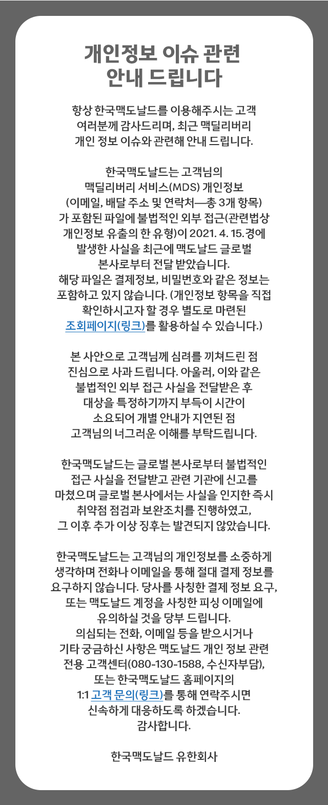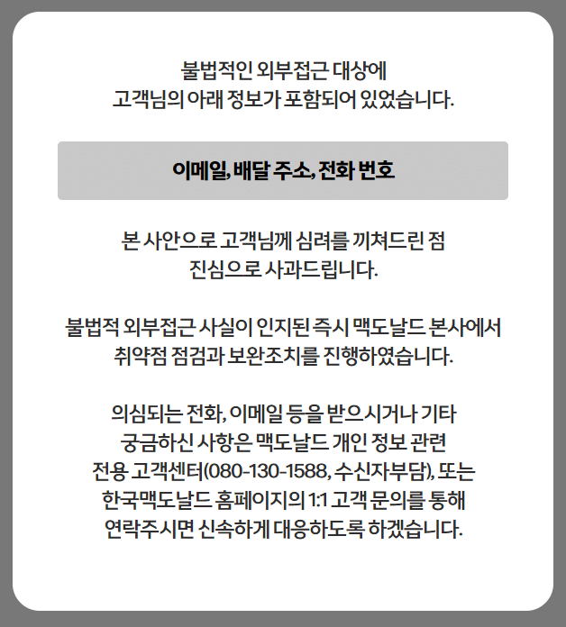 조회해보니까 이메일, 배달주소, 전화번호 유출됨