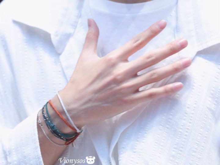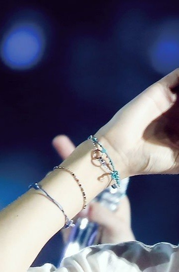 뷔가 아예 몸에 박제하고 다니는 실팔찌들