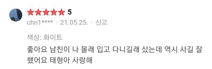 남자 티셔츠인데 '디자인 예쁨 + 뷔가 구매' 이유로 후기는 여자들만 가득함ㅋㅋㅋ