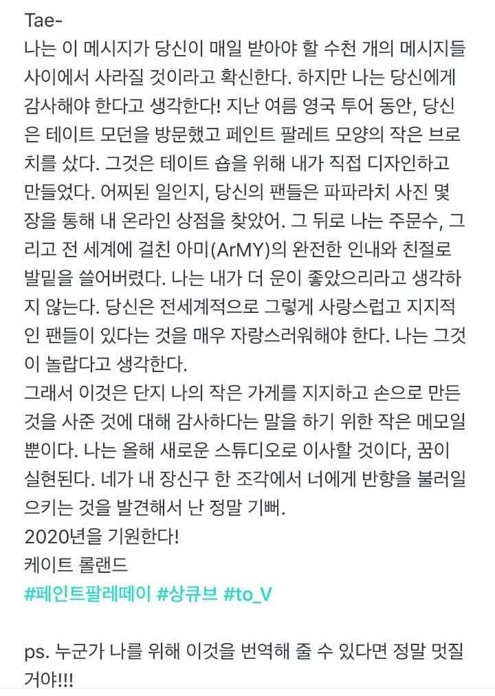 디자이너가 뷔에게 남긴 편지를 보니,