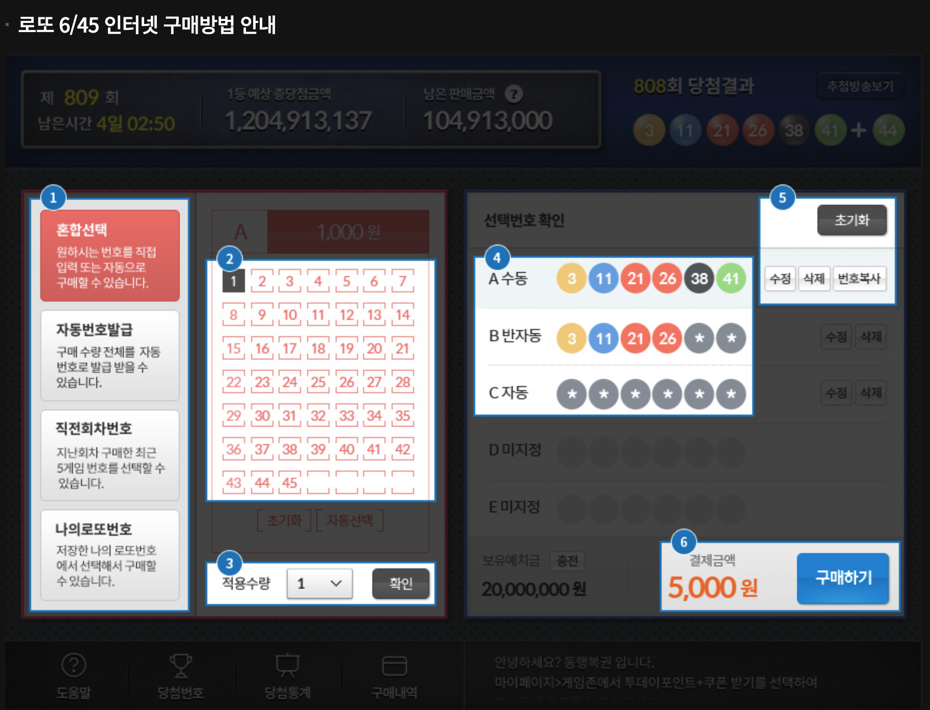 구매방법 < 로또 6/45 < 복권정보 | 동행복권
