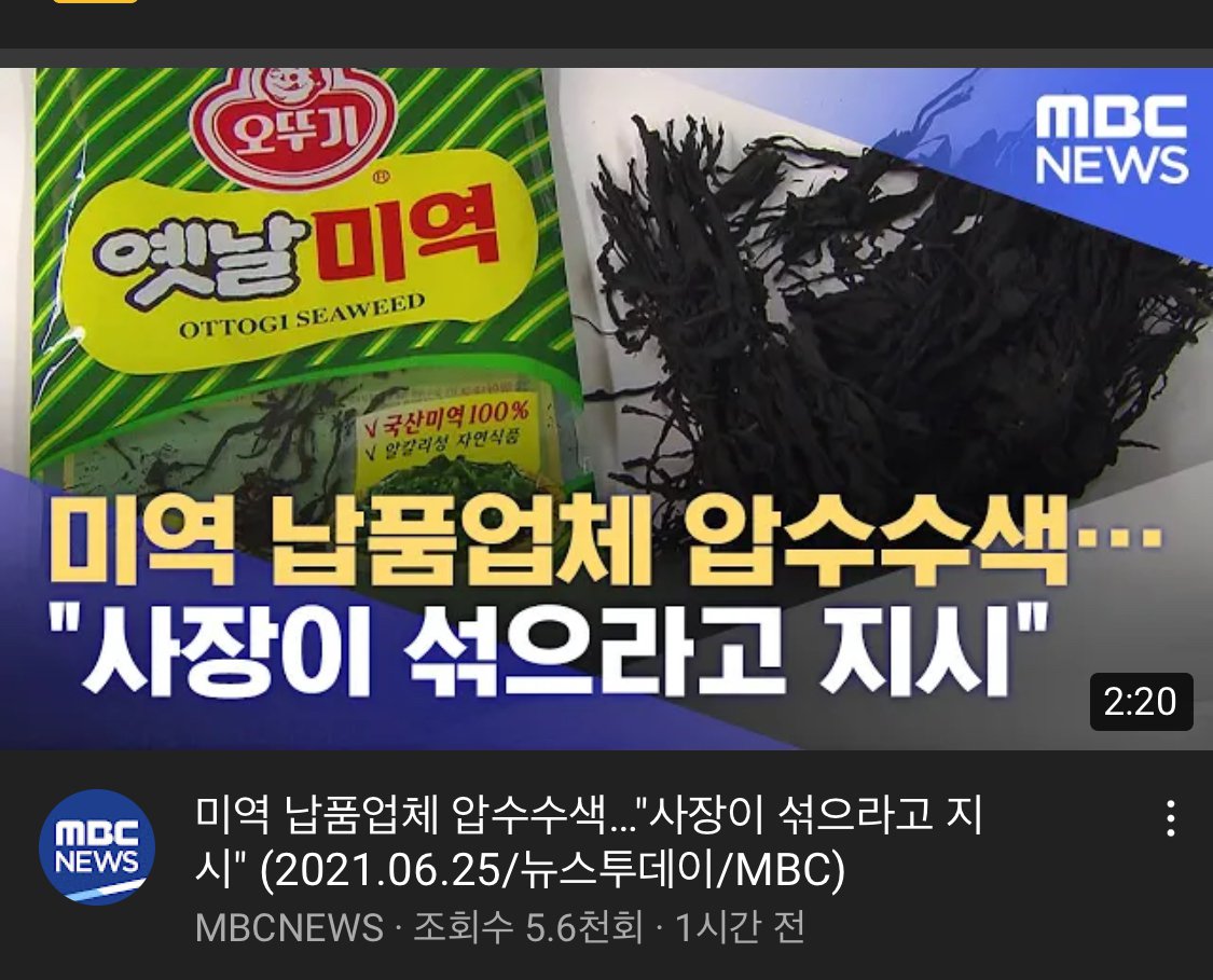 오뚜기 미역에 중국산 미역을 넣고 중국산인걸 감추려고 화학처리까지 했다는 의혹이 불거짐