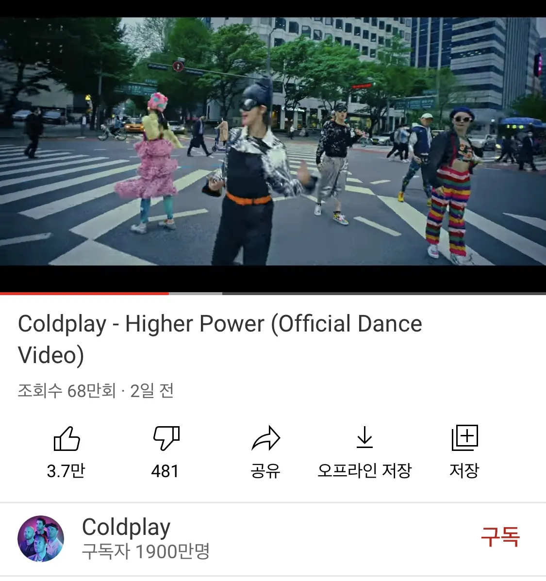 콜드플레이 오피셜 뮤직비디오 출연에 댄스 특별 영상까지!!