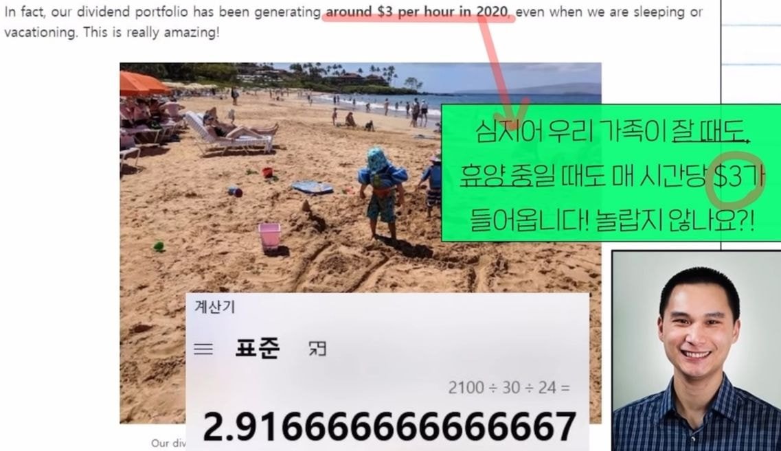 그는 이미 가만히 숨쉬기만 해도 시간당 $3가 알아서 들어오는 구조를 작년 2020년에 완성했습니다.