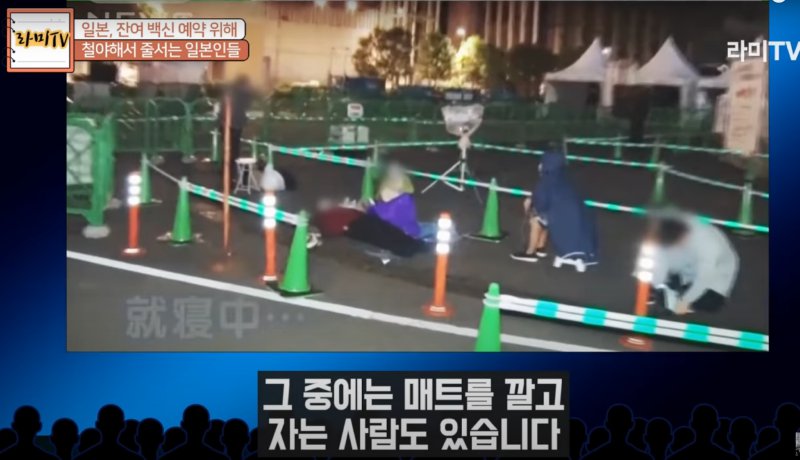 잔여 백신 예약 위해 도쿄에 밤샘 대행렬이 생긴 웃픈 현실을 전하는 일본방송 - 철야하는 일본인들의 눈물겨운 사연들