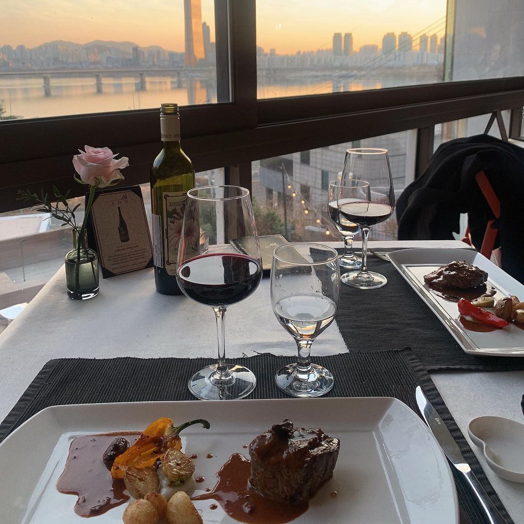 ▲후기(식신 얼리어덕후): 야경 뷰가 멋있어서 저녁에 가는 걸 추천함. 디너 코스 중 채끝 등심 스테이크를 먹었는데 미디엄 레어로 구워 부드러운 육질이 일품이었음.