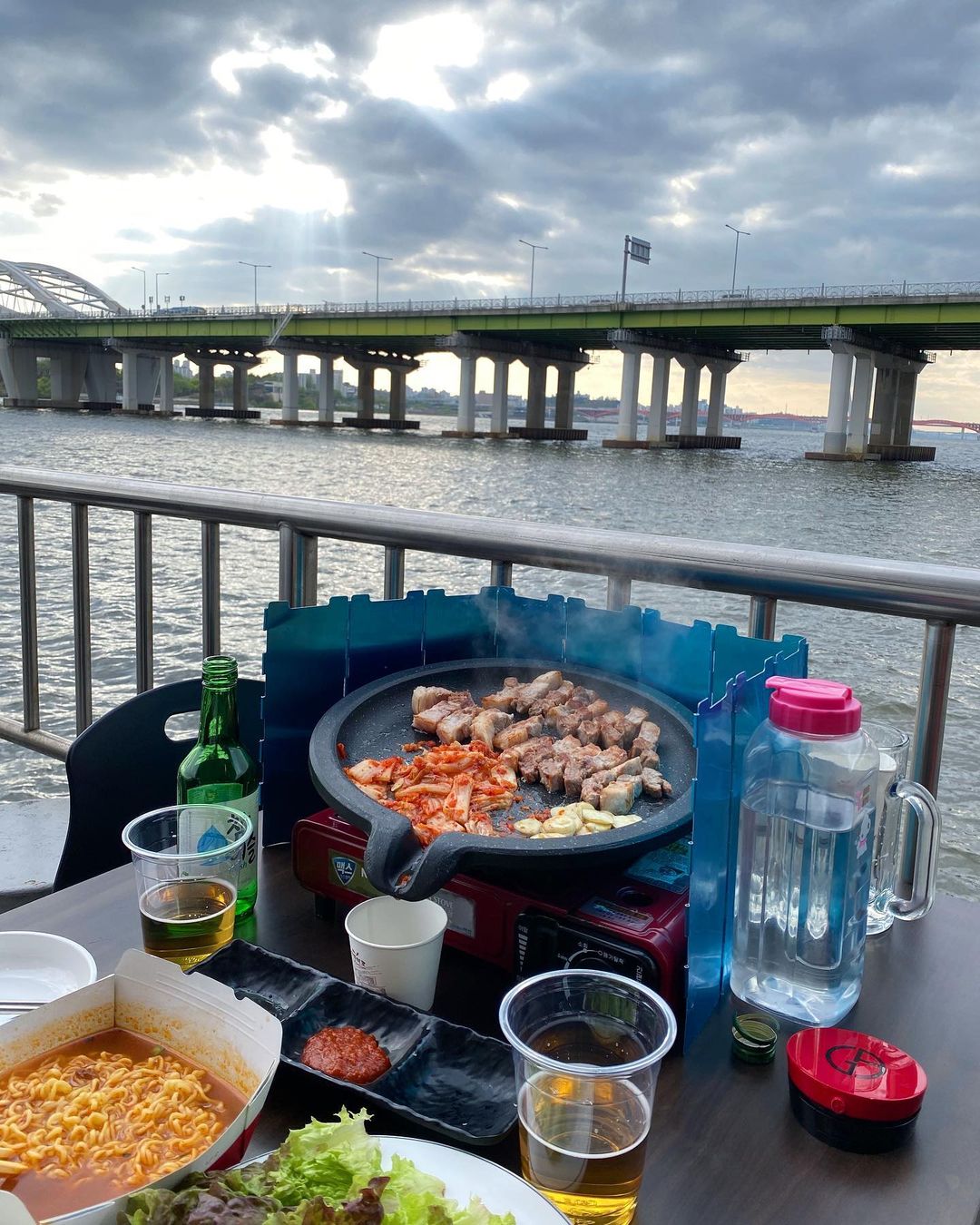 ▲후기(식신 리뽀뿌뽀): 한강에서 치킨이나 짜장면은 먹어봤지만, 삼겹살을 직접 구워 먹다니! 웨이팅은 있지만, 요즘같이 날씨 좋은 날 가기 딱 좋음! 한강에서 빠질 수 없는 즉석라면도 인기임!