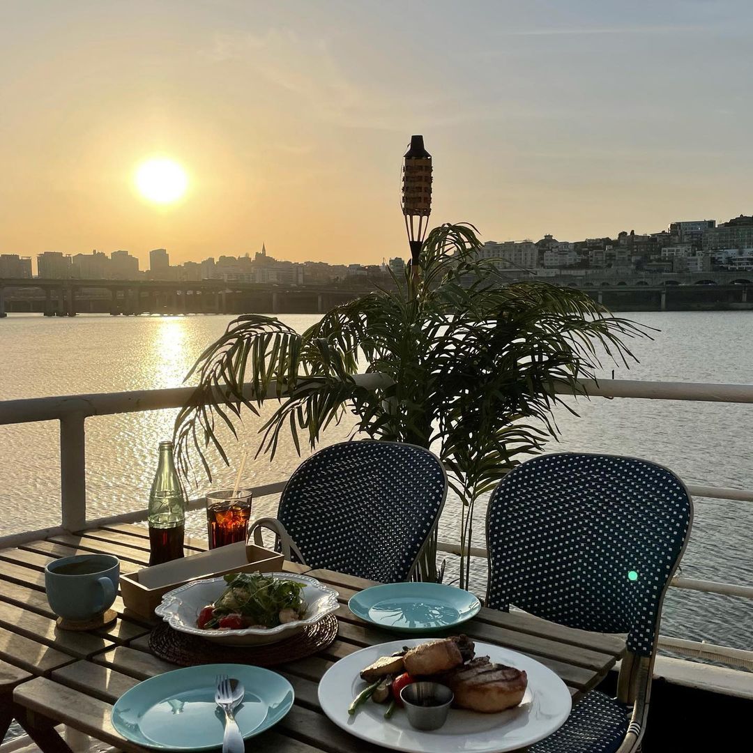 ▲후기(식신 마시멜로우): 찐 한강 뷰 맛집이에요. 테라스 난간 너머 바로 한강이 있어 여행 온 듯한 기분도 들었어요. 테라스 자리는 식사 메뉴 주문할 때만 가능한 점 참고하세요!