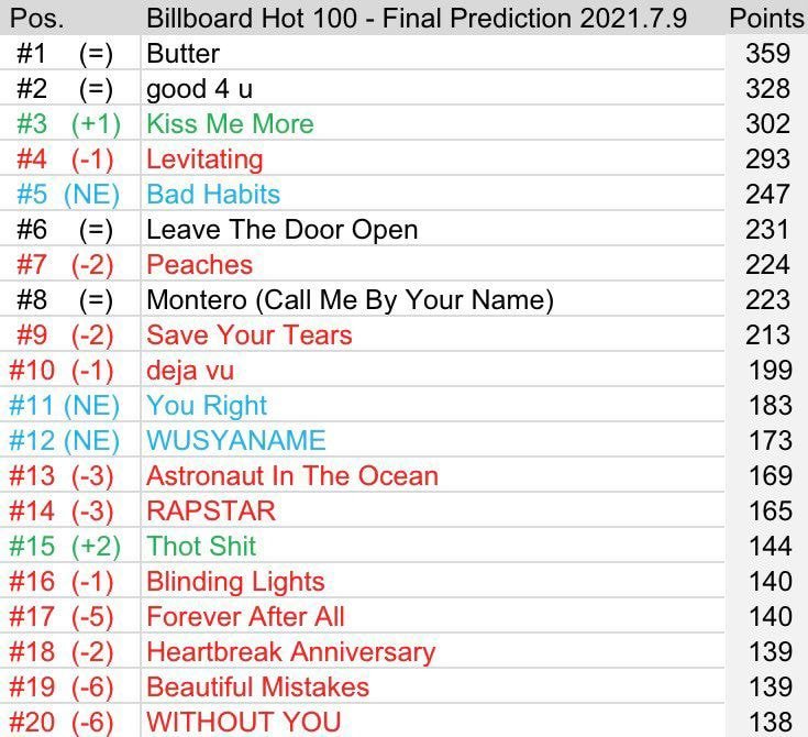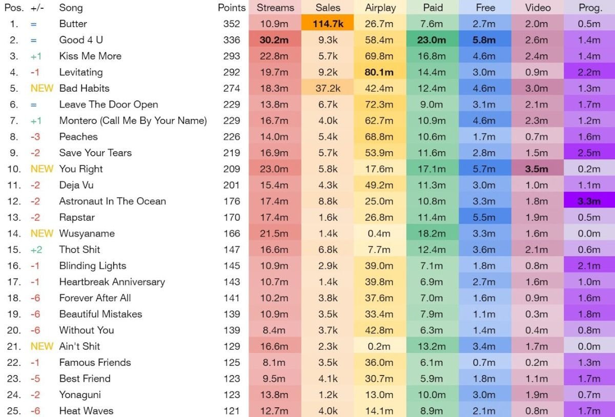 방탄소년단 버터 Butter 빌보드 핫100 6주 연속 1위 예측