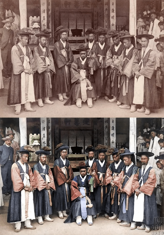 1890년 부산의 어느한 관청에서 찍힌 흑백사진과 컬러 복원사진
