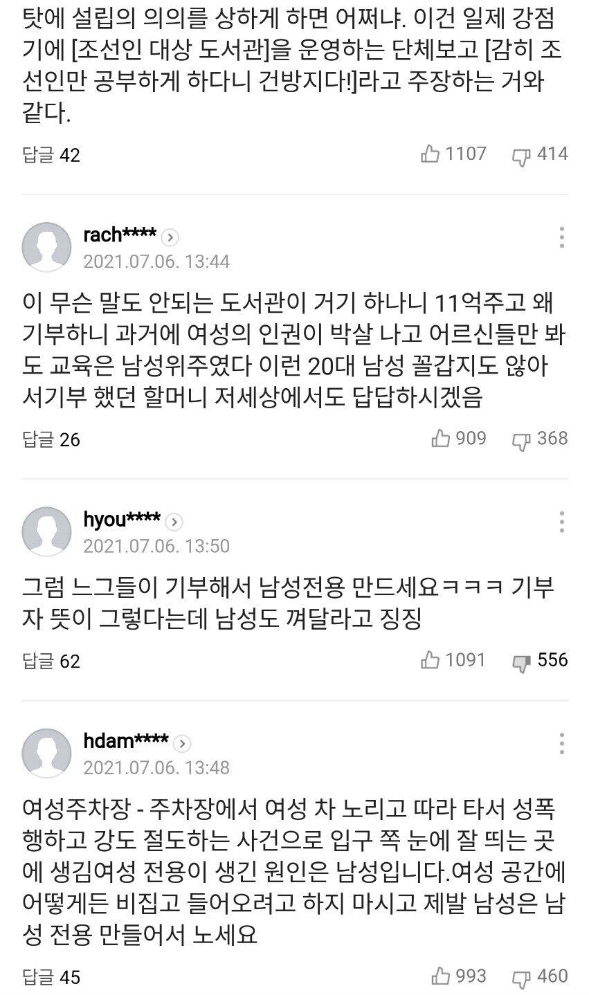 김학임 할머니는 여성전용도서관 만들어 달라고 안했음