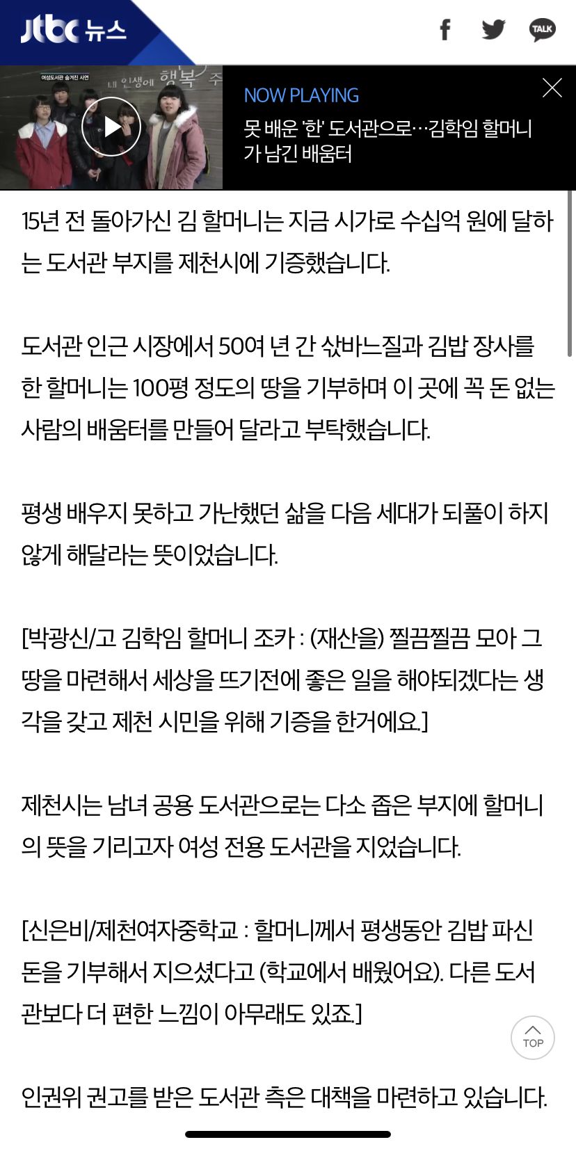 김학임 할머니가 기증한 땅의 원래 취지는 제천시에 학생들과 고학들이 공부할수 있도록 도서관 지을 땅을 기증하셨음.