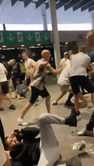 잉글랜드 팬들이 이탈리아 팬들 무차별 폭행중