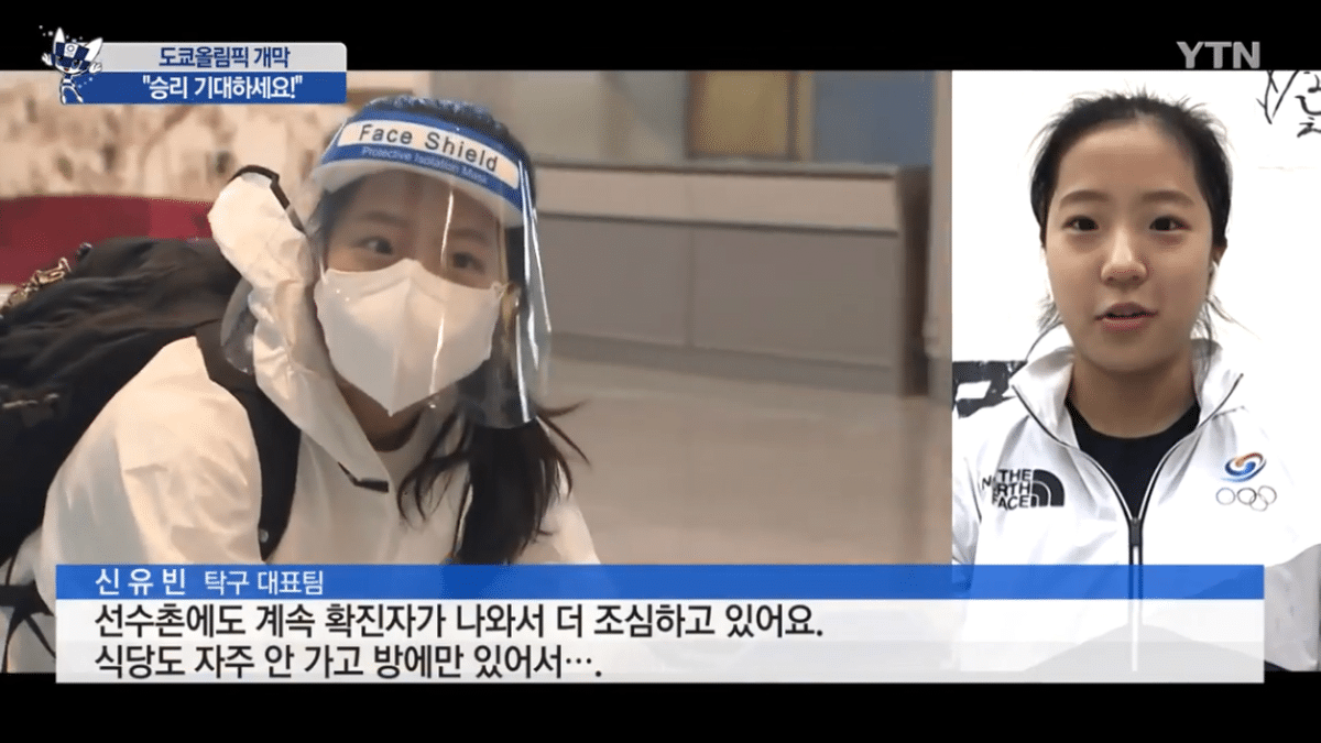 백신 못맞아서 방역복 사비로 주문해서 비행기탄 신유빈 선수
