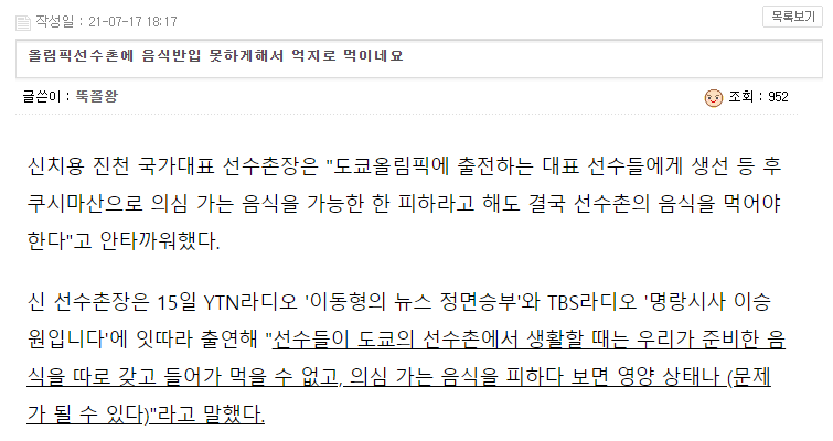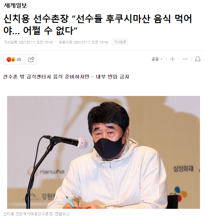 | 일본 정부, 선수촌에 한국 음식 반입 금지 명령 |
