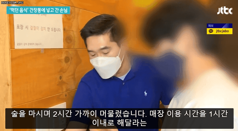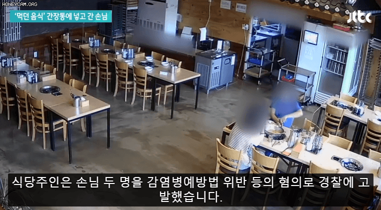 식당 주인이 방역 수칙 때문에 이제 그만 나가달라고 하자, 한 손님이 자기가 먹던 음식을 다같이 먹는 간장통에 몰래 넣었습니다.