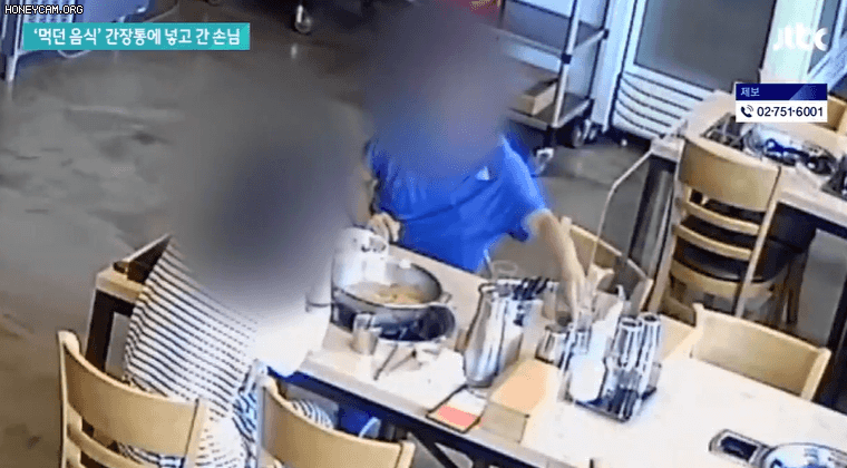 먹던 손님 머에 기분 상했는지 공용으로 먹는 간장통에 이물질 넣는걸 cctv 확인