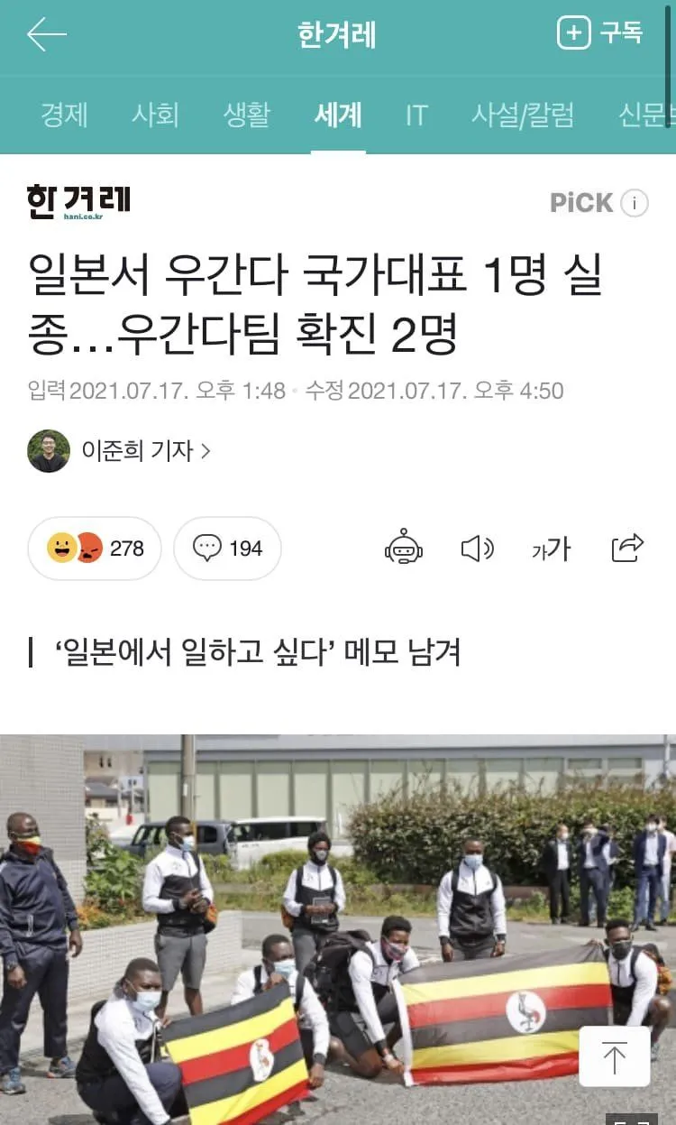 올림팍 참가를 위해 입국한 우간다 선수중 한명이 선수촌에서 탈주, 기차표 사서 어딘가로 사라짐.