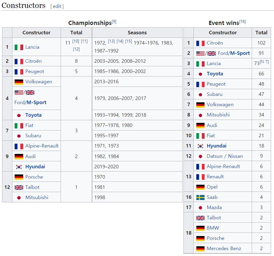 이를 통해 WRC(월드 랠리 챔피언십, 주로 비 포장도로나 굽은길, 좁은 골목길 등을 달린다)에 참가하며