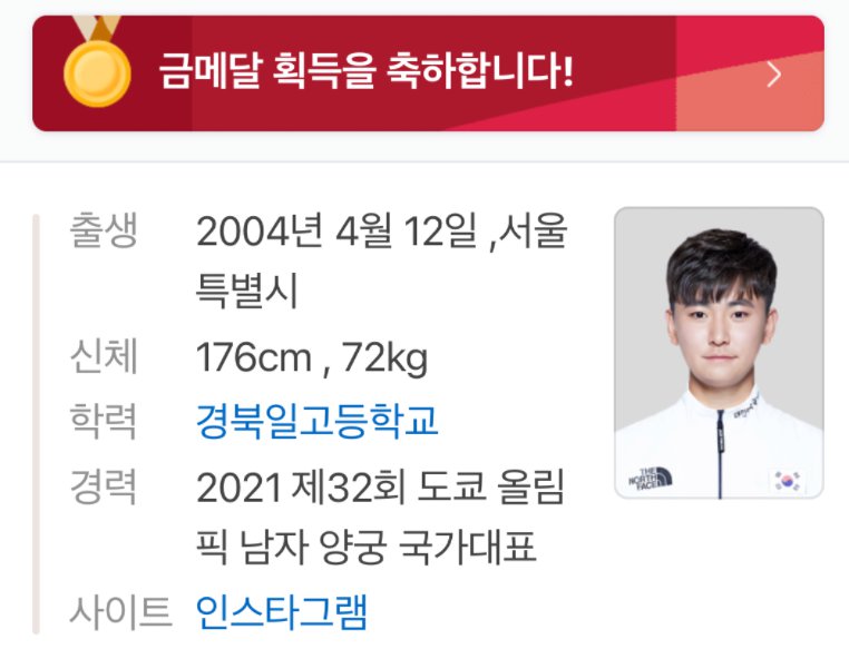 1. 도쿄올림픽 대한민국 첫 금메달 (덤으로 군면제)