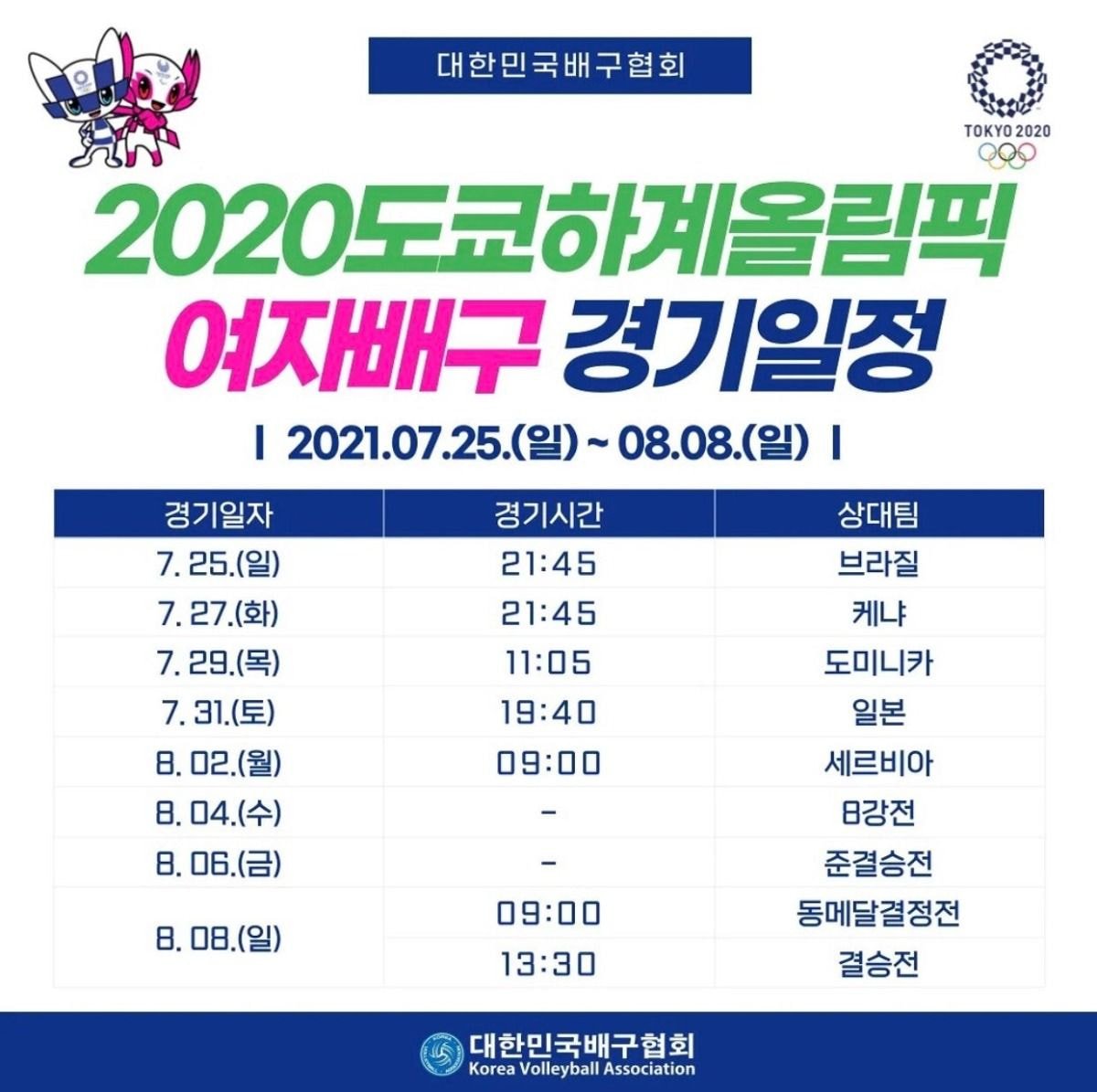 도쿄올림픽 여자배구 경기일정 🇰🇷