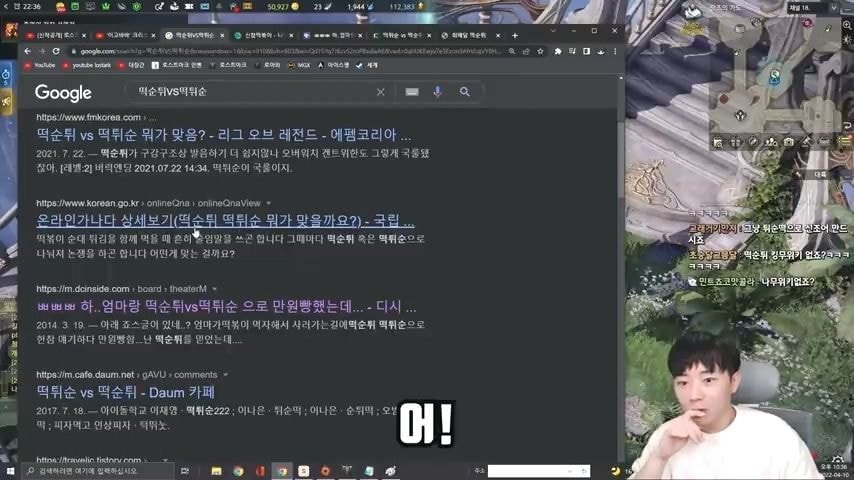 떡순튀로 검색해도 떡튀순으로 나옴