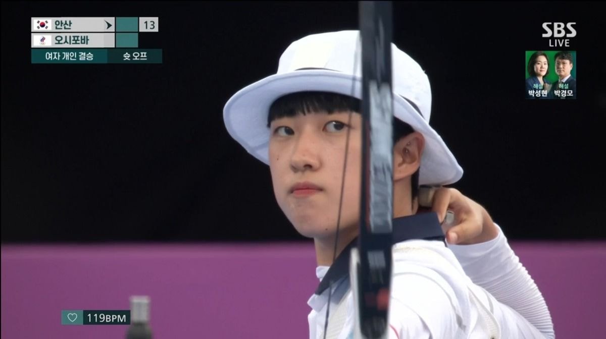 양궁 준결승전 슛오프 때 안산 선수 심박수 108BPM