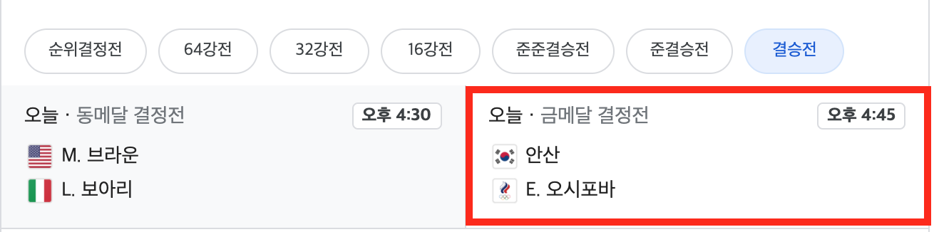 | 도쿄올림픽 여자 양궁 개인전 결승전 대진표 |