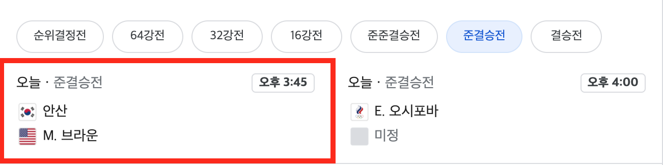 | 도쿄올림픽 여자 양궁 개인전 준결승 대진표 |