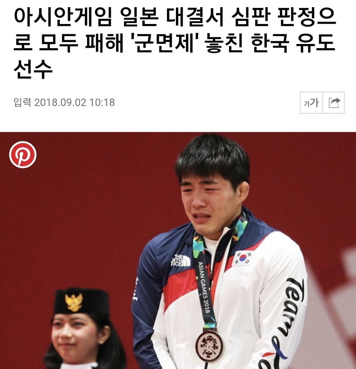금메달을 놓치게 됨ㅠㅠ(아시안게임은 금메달만 군면제)