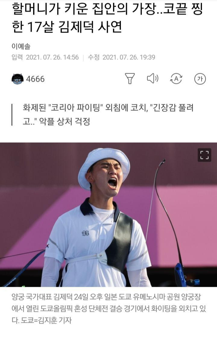 어머니 없이 아픈 아버지 돌보며 '하루 16시간씩 연습'해 양궁 최연소 금메달리스트 된 김제덕 선수