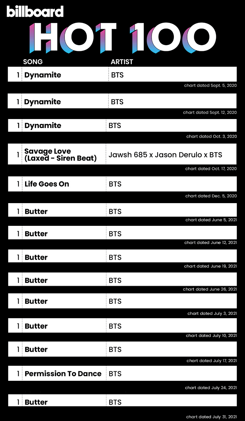 BTS 방탄소년단 빌보드 핫100 - 7월 4주차 순위 최종 예측 Butter 역전