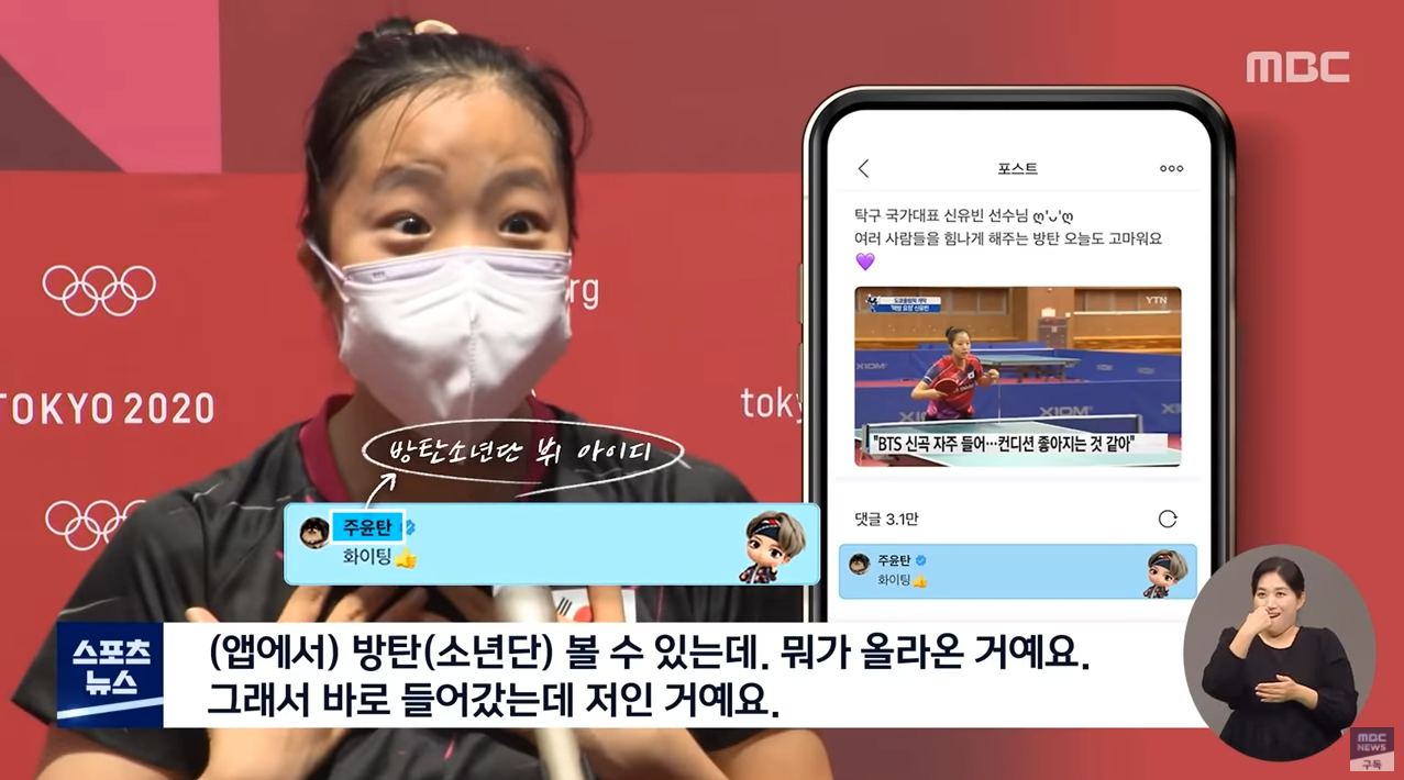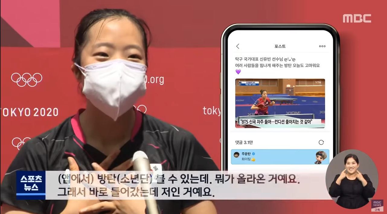 선수 자신은 지난 1년간 탁구선수로서 성장하는 걸 체감할 수 있어서 행복한 시간이었다. 걱정해주신 분들께도 감사하다고 했다. 그 사이 여자탁구 국내 최강자로 발돋움한 그는 올림픽을 통해 더 큰 선수로 거듭나겠다. 혹시나 금메달을 따면 BTS 오빠들을 실제로 볼 기회도 생기지 않을까 라며 수줍은 기대를 전했다.