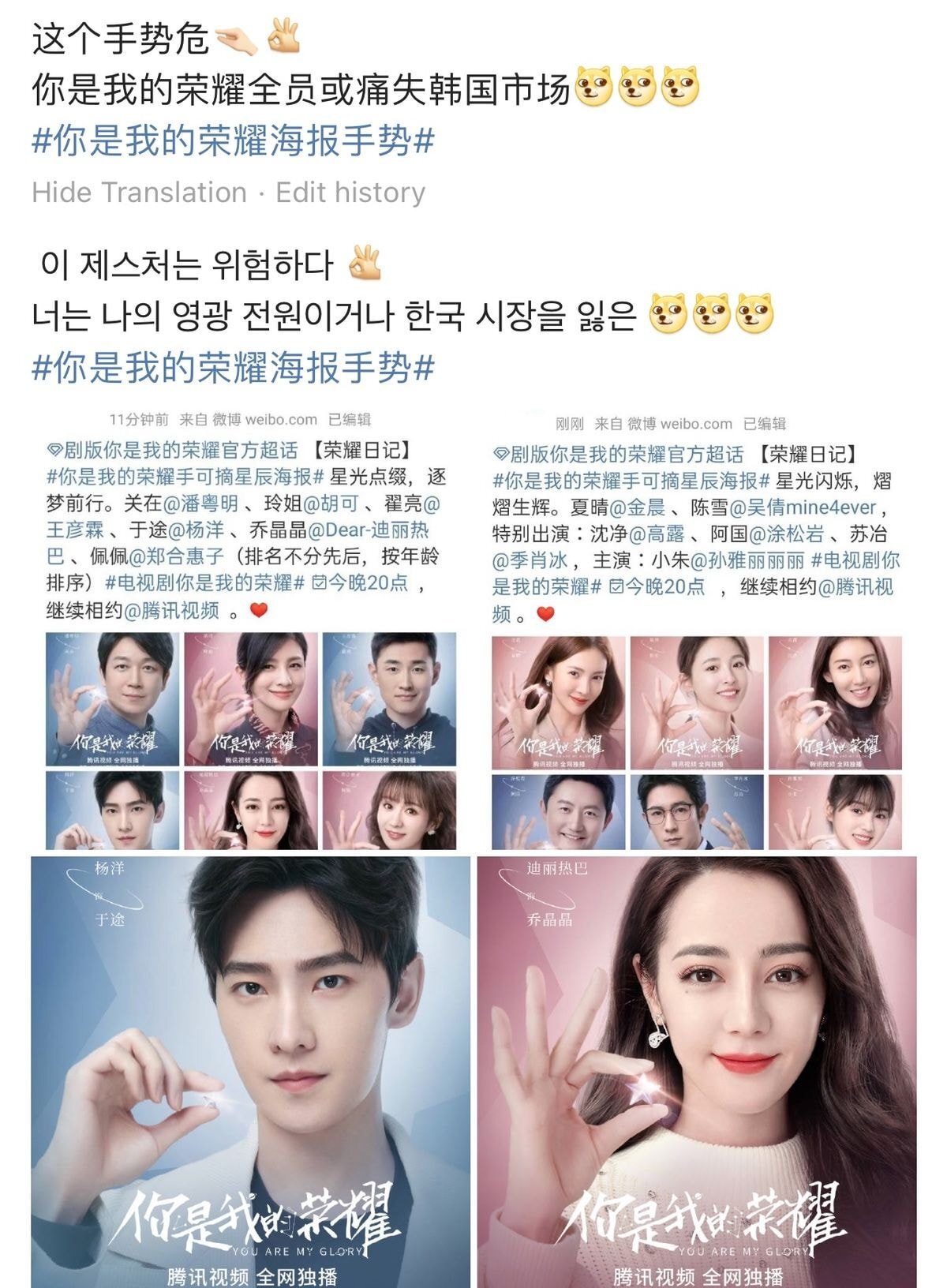 중국에서 우리나라 저 손가락 모양 논란이 있는거 너무 잘 알고 있고
