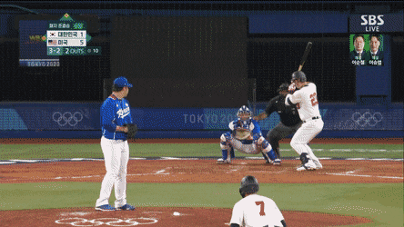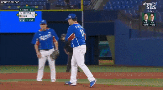 미국의 연속 안타로 주자들 다 홈인하면서 7:1로 5점 내주고 존나 어렵게 이닝 끝