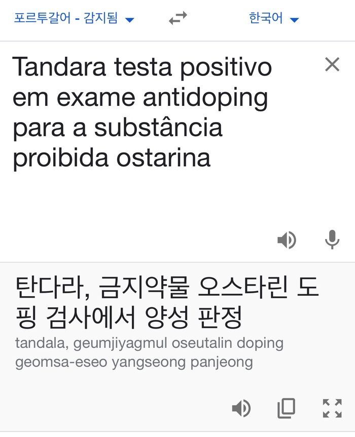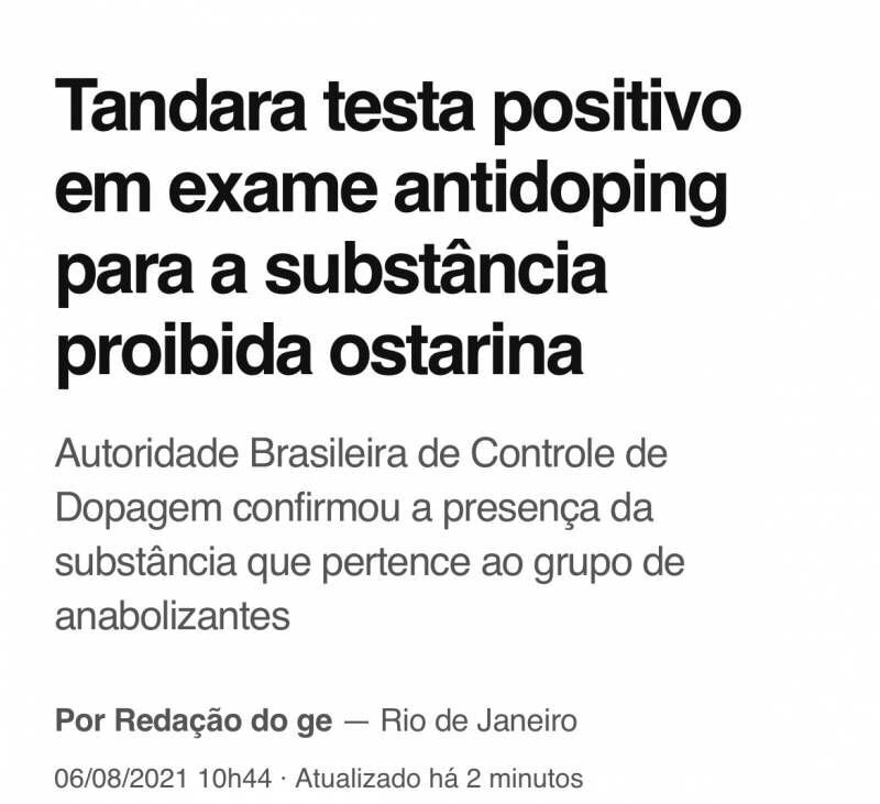| 브라질 탄다라 선수가 도핑 검사에서 적발된 약물은 "근육증강제"로 밝혀짐 |
