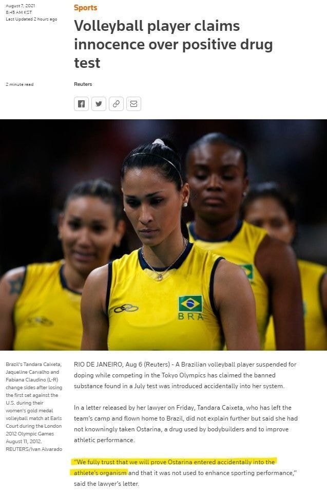 도핑 브라질 여자배구 결백호소 "금지약물이 우연히 몸에 들어가"
