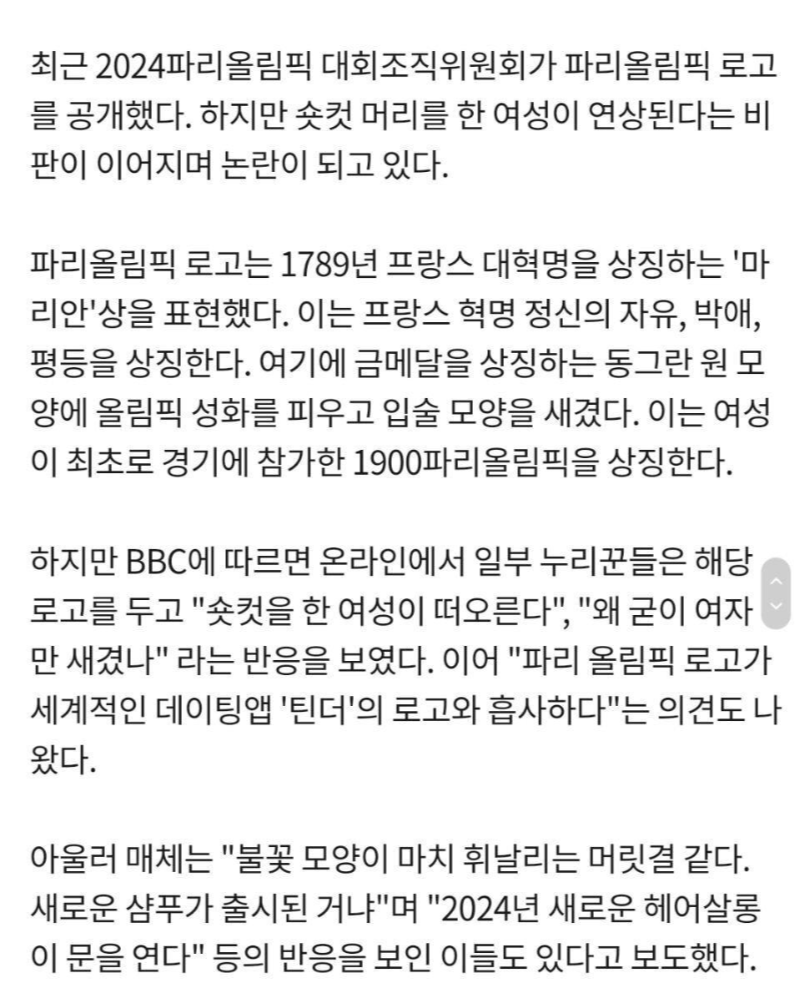 | "왜 숏컷 여성이야"… 파리올림픽 로고가 어떻길래? |