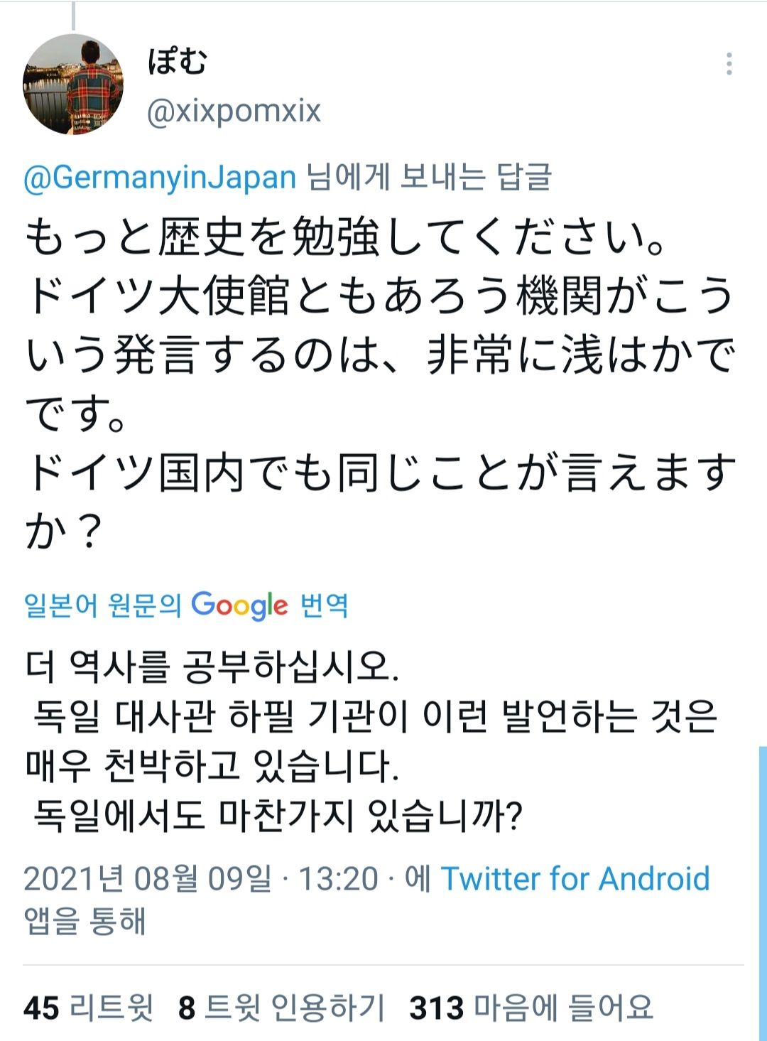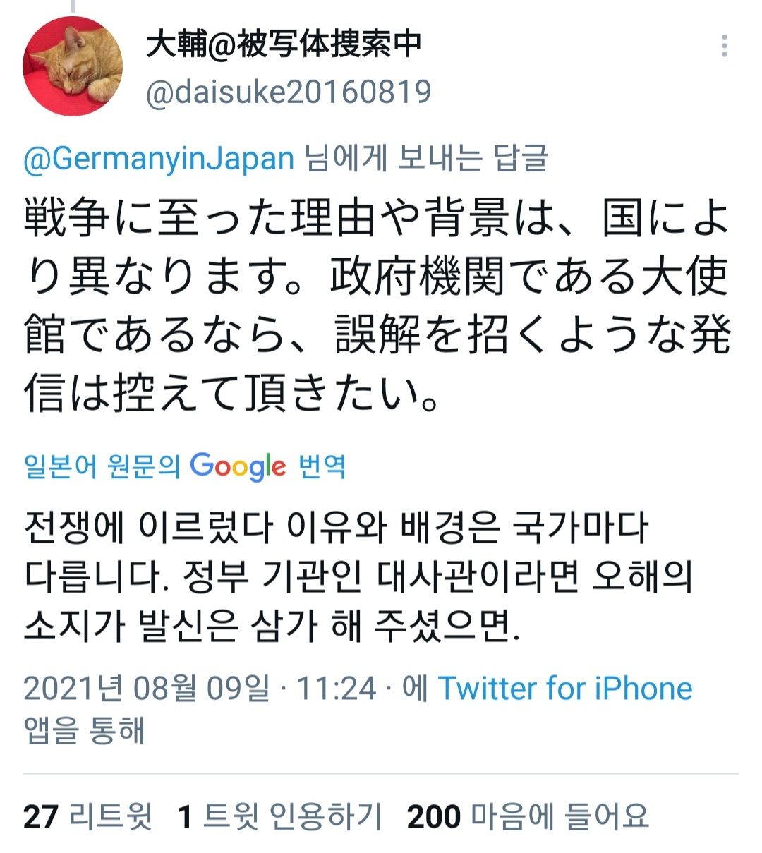 이에 따라 일본 주재 독일대사관은 원폭 피해다 추모 트윗을 올렸죠.